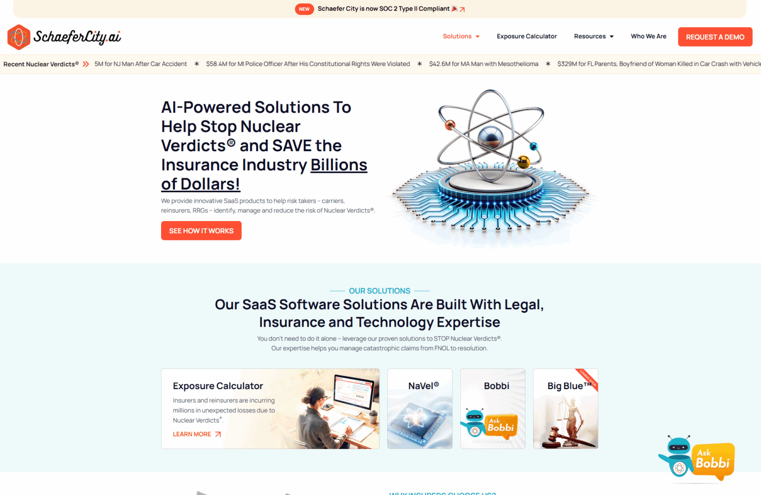 Bertoli Marketing partnered with SchaeferCity.ai an AI-powered analytics platform helping insurance carriers mitigate nuclear verdict risks, to transform its digital presence and strengthen its marketing foundation. The project began with a full website redesign that modernized the brand’s look, streamlined navigation, and built in clear calls-to-action that guided visitors toward demos, consultations, and educational content. To further support growth, Bertoli Marketing developed a robust content marketing strategy that included blogs, whitepapers, and case studies aligned to the unique challenges of insurers and mapped directly to the awareness, consideration, and decision stages of the buyer’s journey
